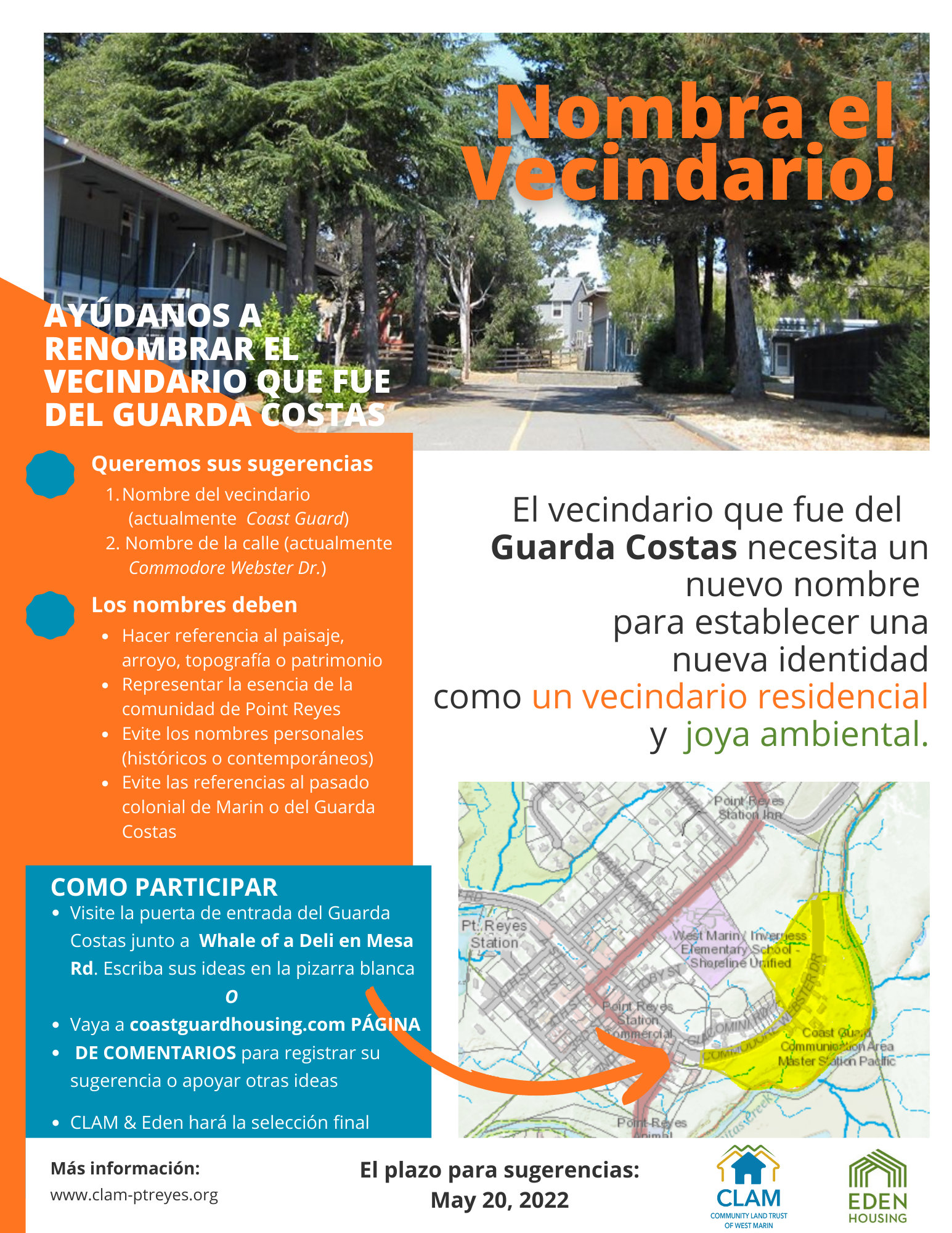 We will be renaming both the neighborhood (currently Coast Guard) and the street (currently Commodore Webster Drive).